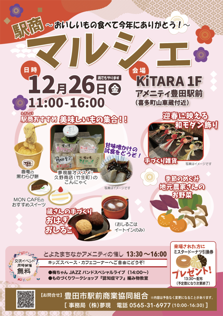 ◆場所:豊田市喜多町2-170 KiTARA1階アメニティ豊田駅前(喜多町山車蔵付近)