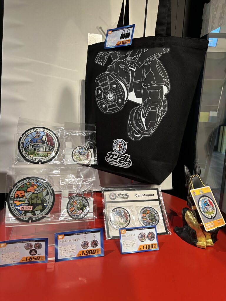 「ガンダムマンホールプロジェクト」公式グッズを3月21日(土)から豊田市に関連する公式グッズを主に販売しています。数量限定のためなくなり次第販売終了となります。興味のある方はお早めにお買い求めください。